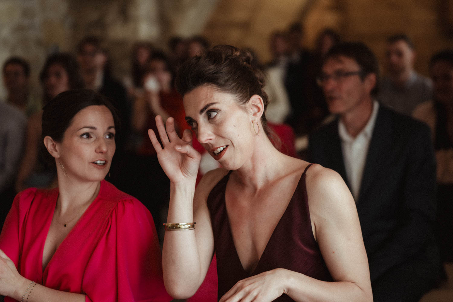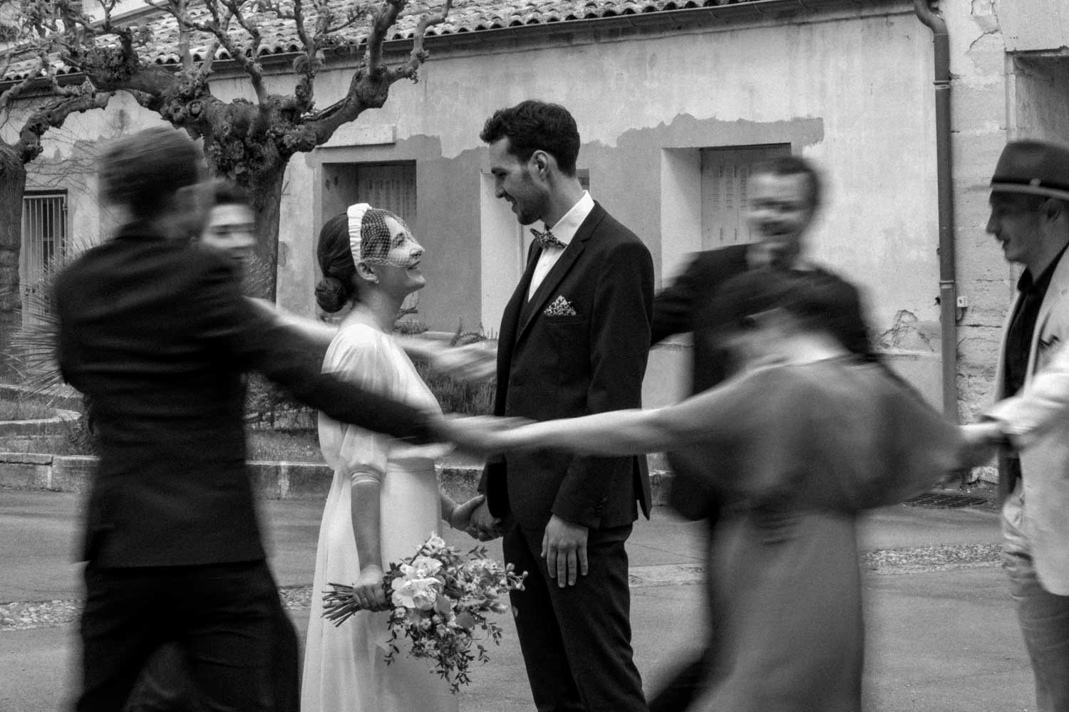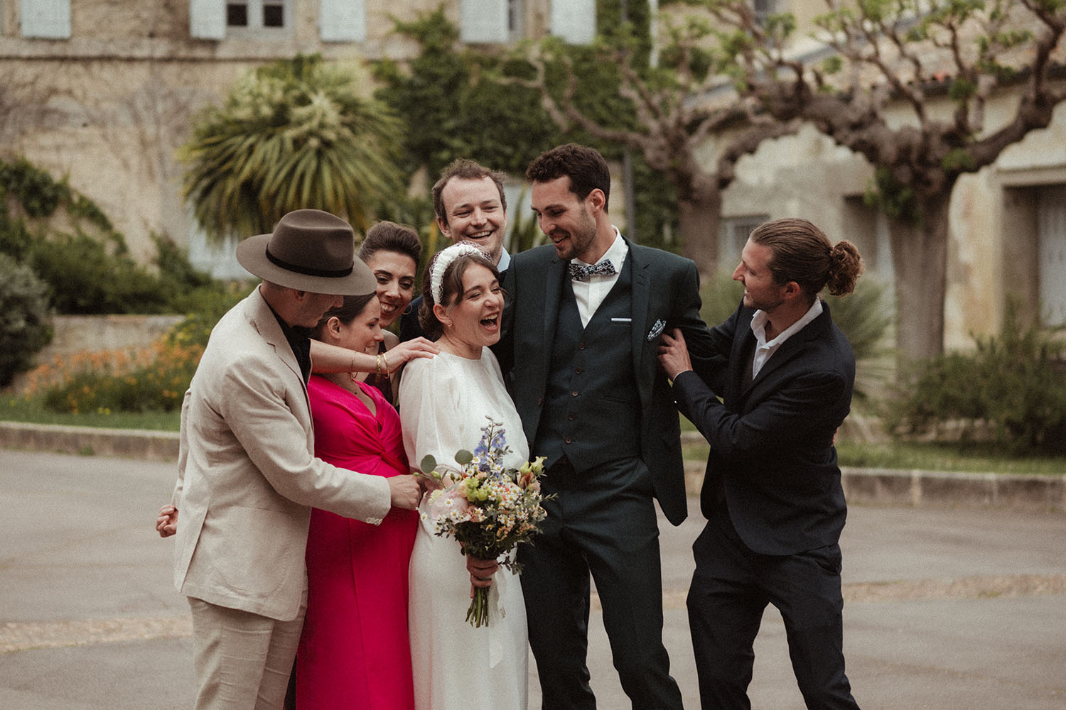 Après un first look derrière le domaine pour prendre le temps de se découvrir tranquillement et en tout intimité, les témoins et amis proches de C. & N. nous ont rejoints pour quelques photos dynamiques (auxquelles j’ai tâché d’apporter quelques flous de mouvement un peu fun par moments). Ensuite, tout ce petit groupe a retrouvé le reste des proches présents pour la cérémonie civile dans cette superbe salle voûtée (que je commence à très très bien connaître depuis que je photographie des reportages à Montpellier). Cérémonie qui a d’ailleurs accueilli pas mal d’émotion, joli début de saison !
