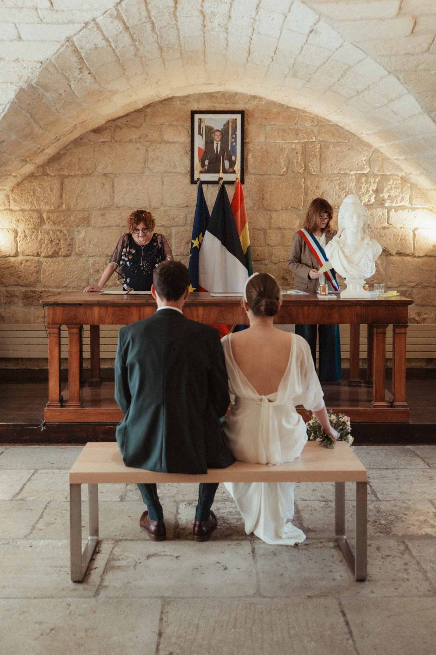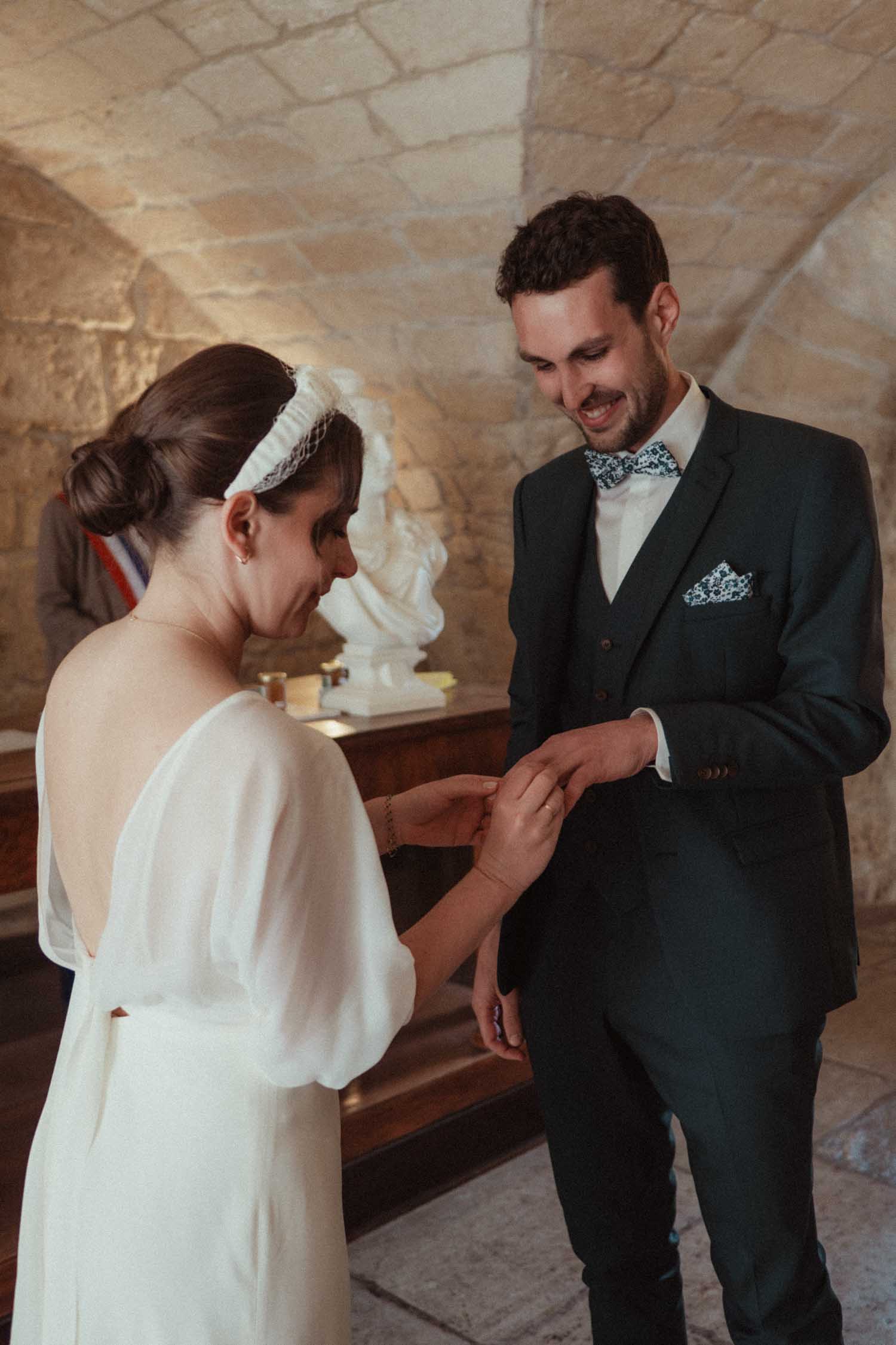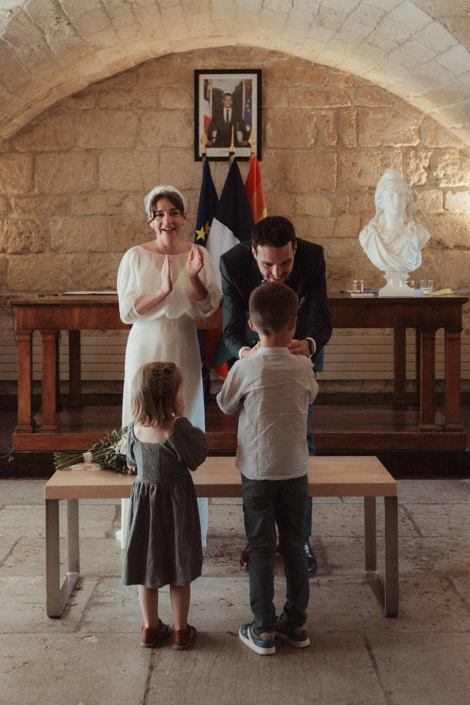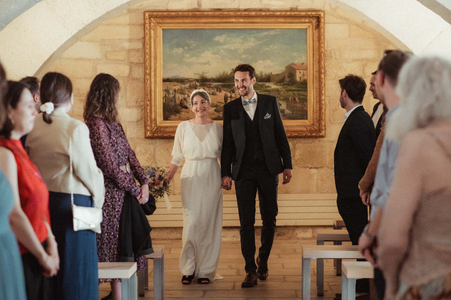 Après un first look derrière le domaine pour prendre le temps de se découvrir tranquillement et en tout intimité, les témoins et amis proches de C. & N. nous ont rejoints pour quelques photos dynamiques (auxquelles j’ai tâché d’apporter quelques flous de mouvement un peu fun par moments). Ensuite, tout ce petit groupe a retrouvé le reste des proches présents pour la cérémonie civile dans cette superbe salle voûtée (que je commence à très très bien connaître depuis que je photographie des reportages à Montpellier). Cérémonie qui a d’ailleurs accueilli pas mal d’émotion, joli début de saison !