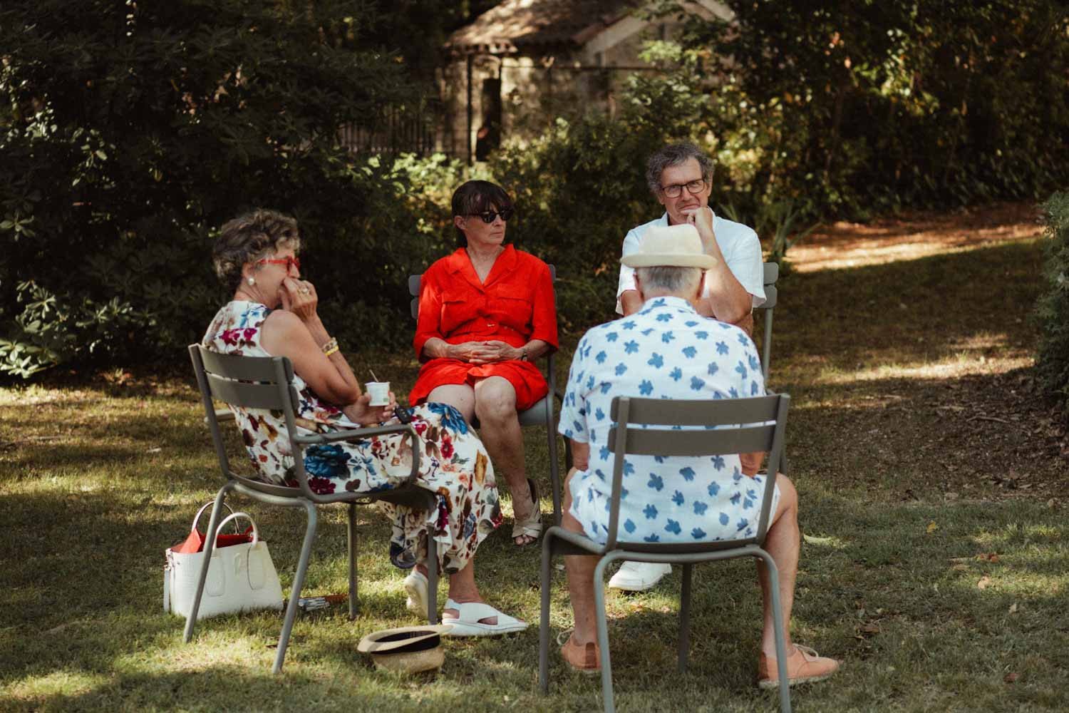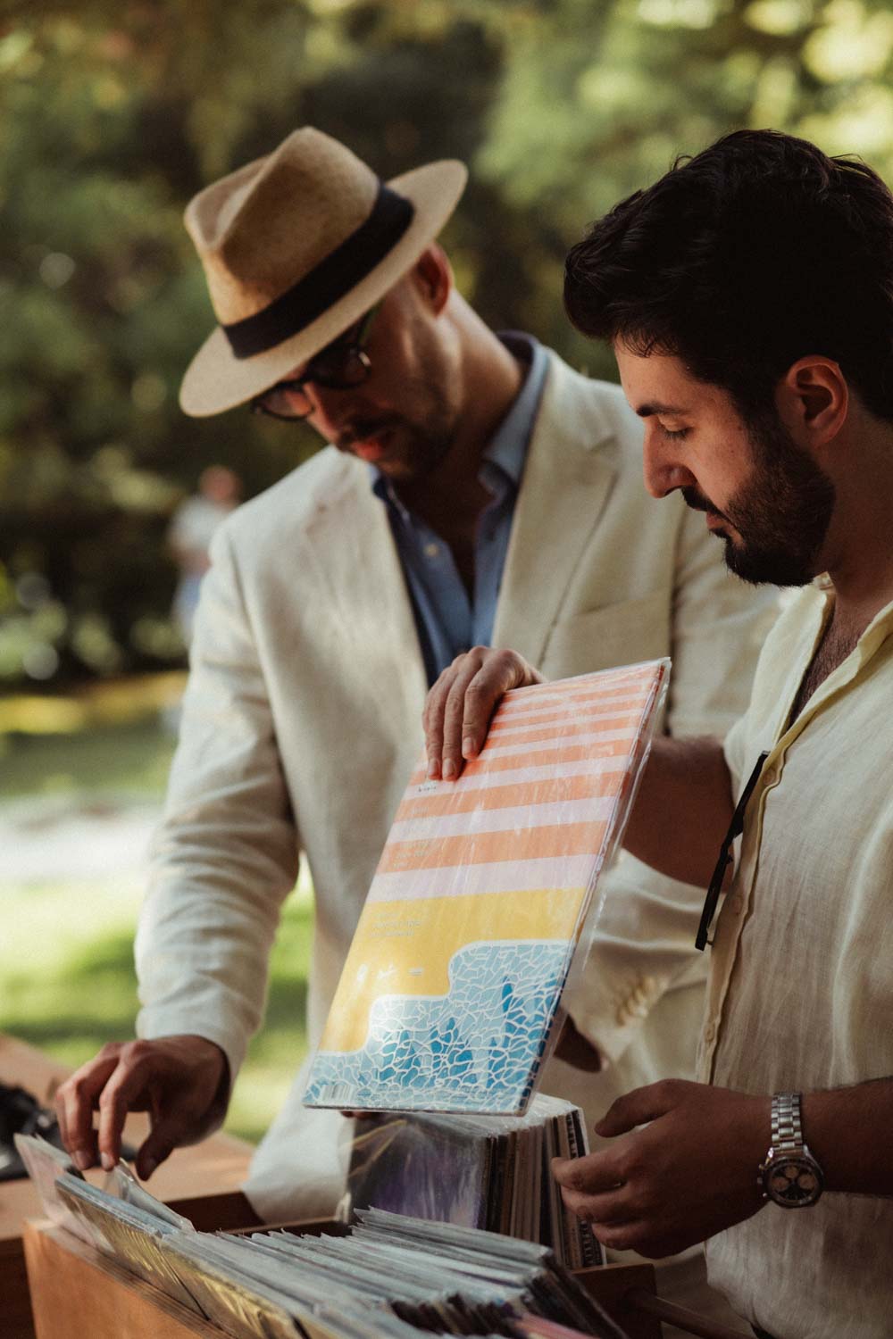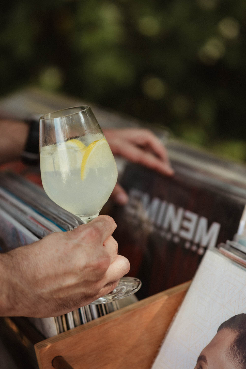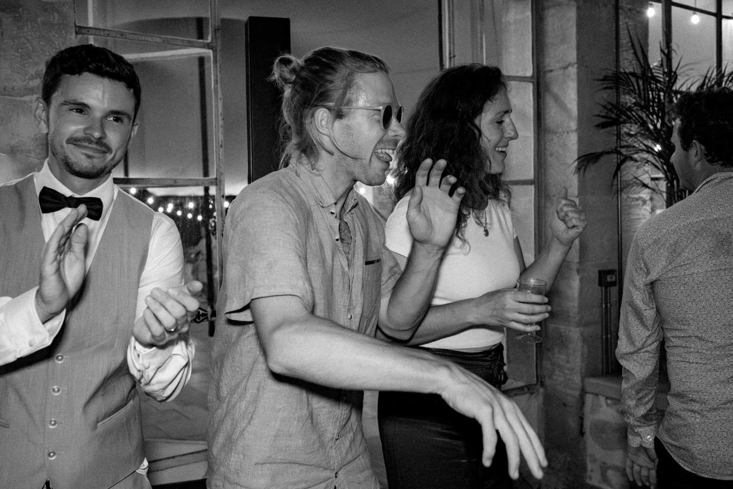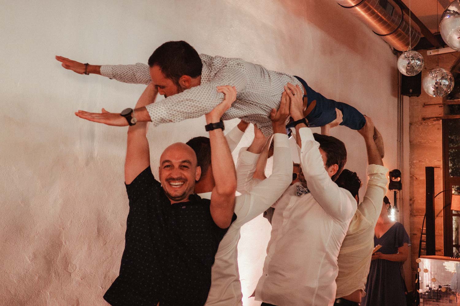 Les cérémonies se sont déroulées quant à elles à la mairie et à l’église de St Georges d’Orques, près de Montpellier. Des glaces et rafraîchissements attendaient les invités près d’un joli pigeonnier et d’un grand tilleul, une fois de retour sur le domaine. Les mariés avaient aussi prévu des bars à spritz et à vinyles pour le cocktail, ainsi que différentes animations : photobooth, bar à tattoos, un medley dansé par les filles, un jeu du bouquet original (sous forme de boîte en verre à décadenasser avec la bonne clé) ainsi qu’une sorte de “qui est qui” à partir d’une collecte de photos de chaque invité(e) enfant (un jeu qui a eu beaucoup de succès, j’ai vu des invités chercher toute la soirée !).