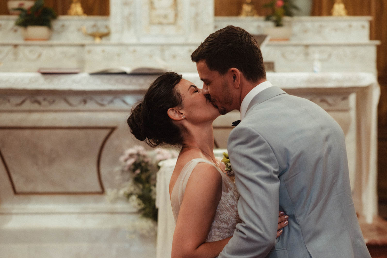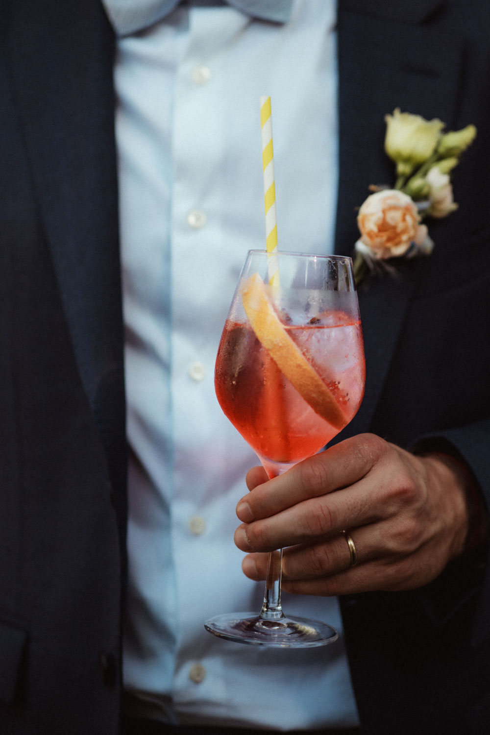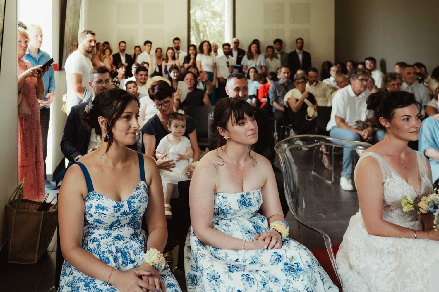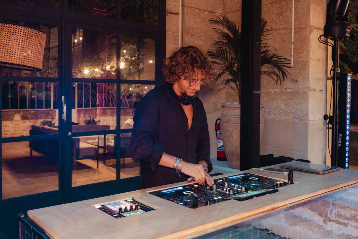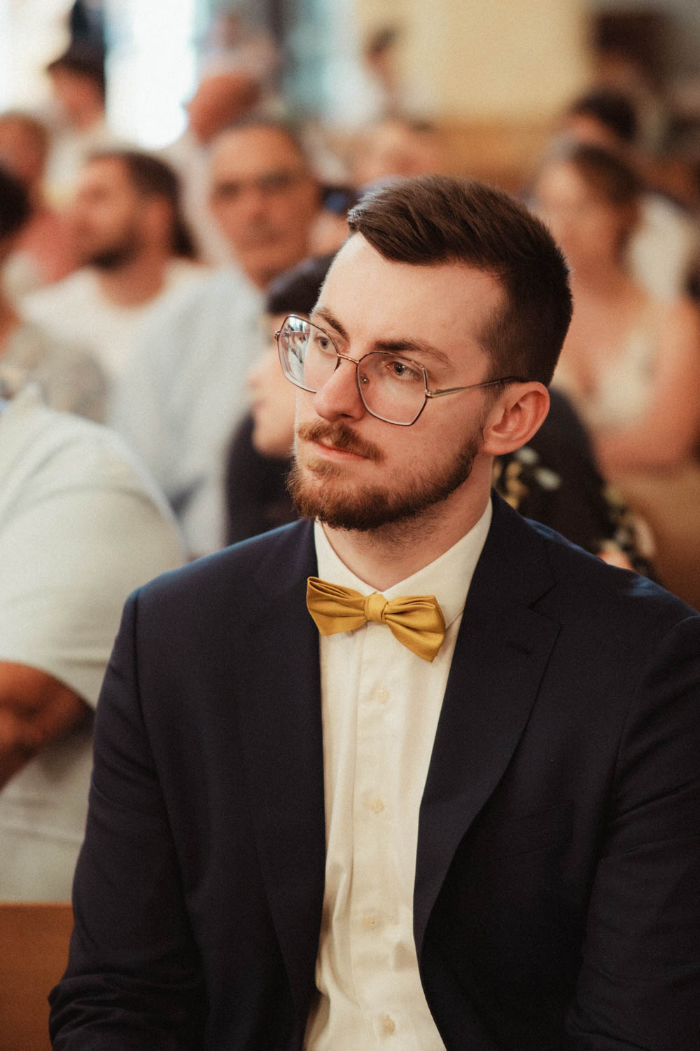 Les cérémonies se sont déroulées quant à elles à la mairie et à l’église de St Georges d’Orques, près de Montpellier. Des glaces et rafraîchissements attendaient les invités près d’un joli pigeonnier et d’un grand tilleul, une fois de retour sur le domaine. Les mariés avaient aussi prévu des bars à spritz et à vinyles pour le cocktail, ainsi que différentes animations : photobooth, bar à tattoos, un medley dansé par les filles, un jeu du bouquet original (sous forme de boîte en verre à décadenasser avec la bonne clé) ainsi qu’une sorte de “qui est qui” à partir d’une collecte de photos de chaque invité(e) enfant (un jeu qui a eu beaucoup de succès, j’ai vu des invités chercher toute la soirée !).