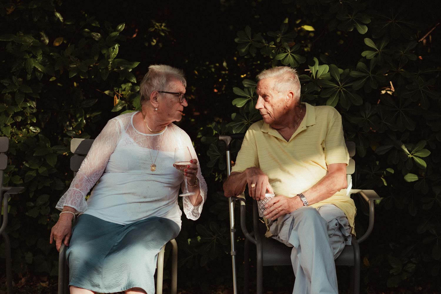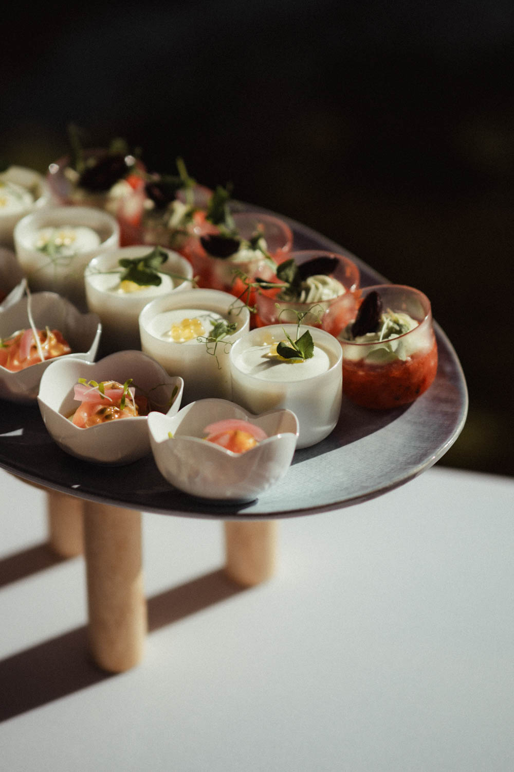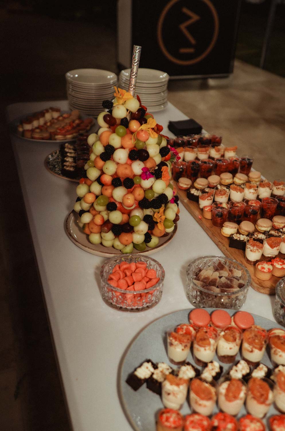 Le dîner a été lancer avec un shooter de limoncello et ponctué de plusieurs jeux pensés par les témoins et incluant de manière particulièrement ludique à la fois invités et mariés : faire lever certain(e)s invité(e)s à partir d’une liste distribuée peu avant pour faire deviner aux mariés le point commun entre elleux (par exemple, iels ont toustes les yeux bleus), ou encore organiser une sorte de loto de rencontres autour de thématiques annuelles : “le(la) gagnant(e) devra offrir des chocolats de Pâques aux mariés” (je ne sais plus si cette idée a réellement existé, mais c’était dans cet esprit et ça a beaucoup plu aussi !).