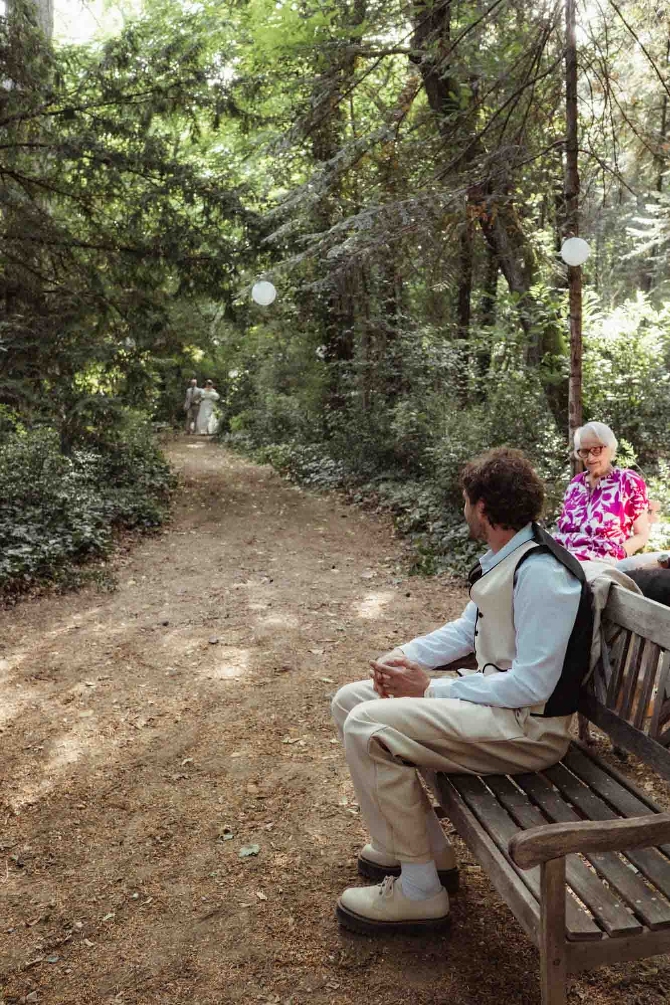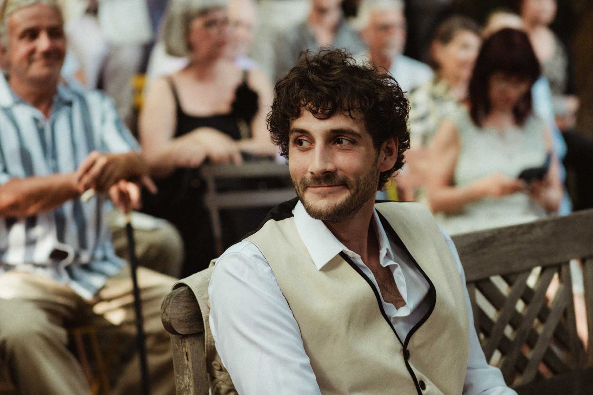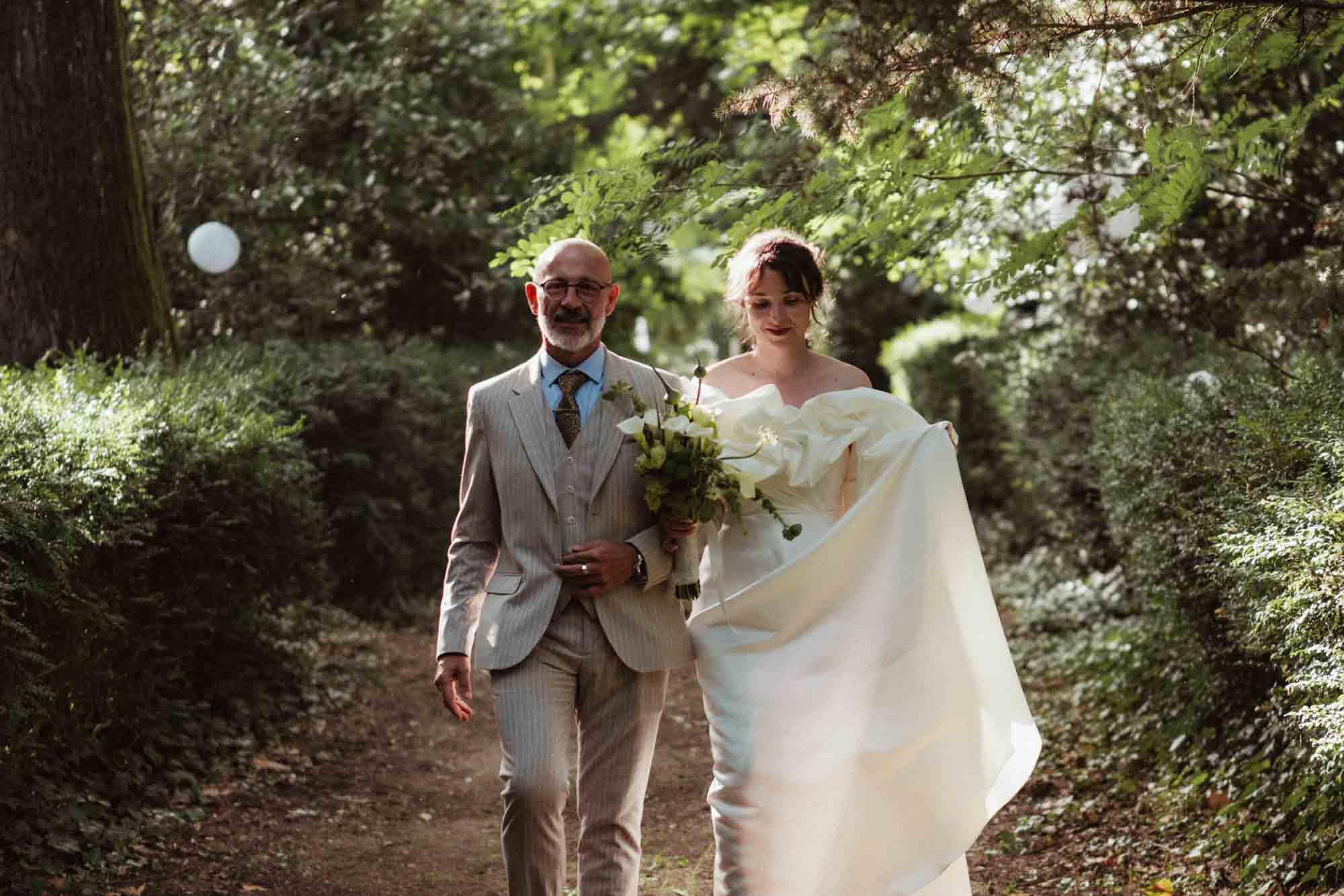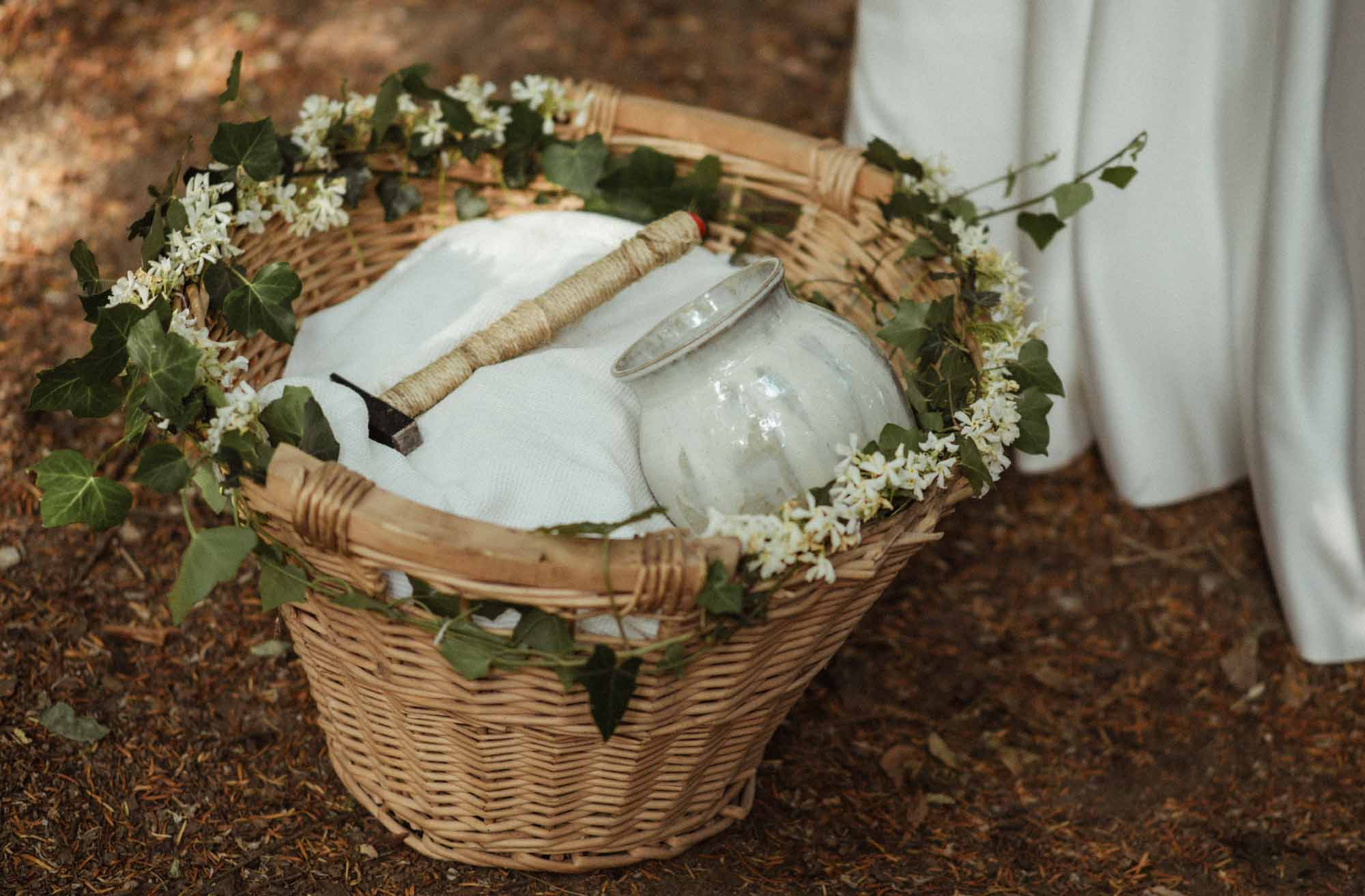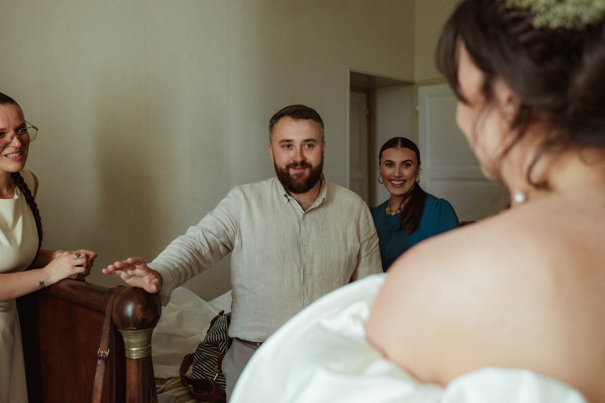 La cérémonie laïque, présidée par l’un des oncles du marié, s’est déroulée dans le petit bois du domaine, le format intimiste du mariage collant à merveille avec l’endroit. Deux enfants ont apporté les alliances (mais j’ai fait le choix, comme habituellement, de ne pas montrer ces photos dans ma sélection ci-dessous afin de préserver leur anonymat).
