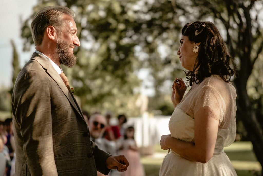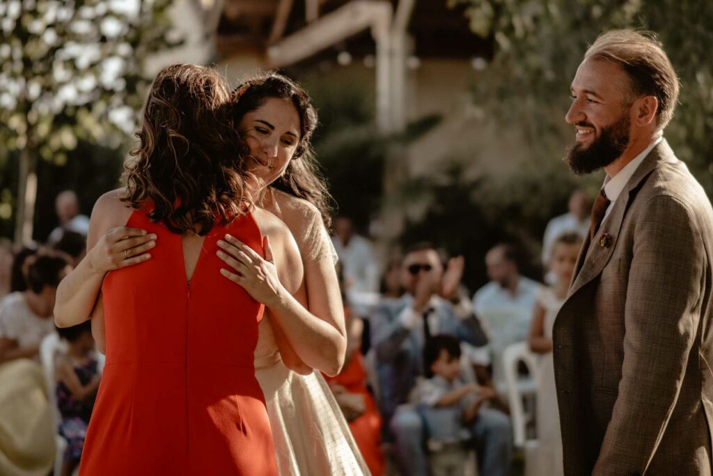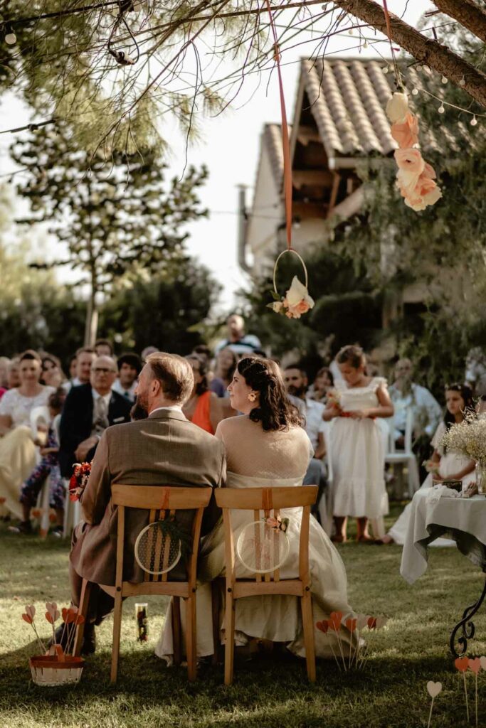 C’est une Simca vintage qui a conduit Marion à la cérémonie civile, qui avait lieu à la mairie de Coursan. La cérémonie laïque était à la fois drôle et émouvante, et par ailleurs plus inclusive pour les parents, frère et sœur et enfants qui ont pu faire une entrée remarquée, ainsi que pour les témoins qui ont prononcé un discours.