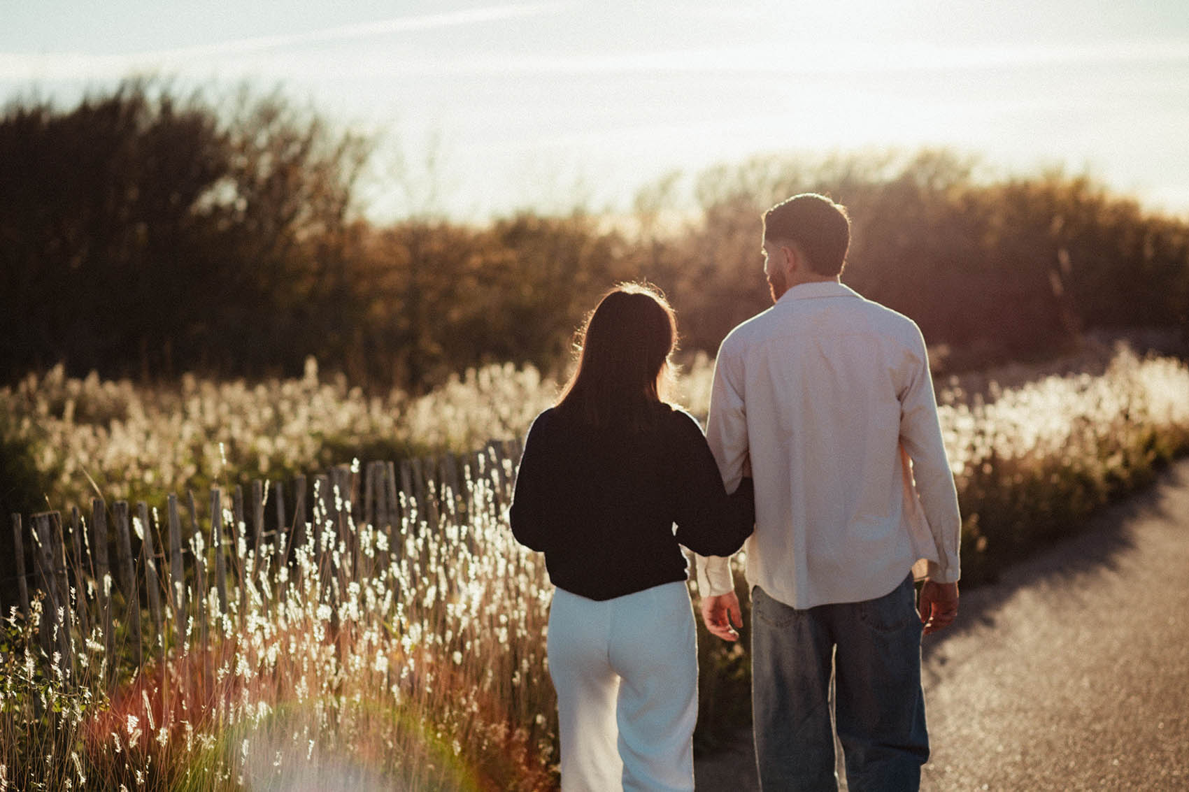 Que vous préfériez la chaleur et l’intimité d’un cadre intérieur (chez vous, dans un café…) ou au contraire une immersion en pleine nature, l’heure dite “dorée”, qui précède le coucher de soleil, peut être magique dans les deux cas. Au fil d’une séance couple, je cherche à capter un maximum de moments intimes, de gestes tendres et complices, de regards qui en disent long… tout en parsemant ces moments de mes idées créatives, ça et là ! Je vous guide un peu mais vous laisse aussi et surtout être vous-mêmes : en mouvement et naturels.